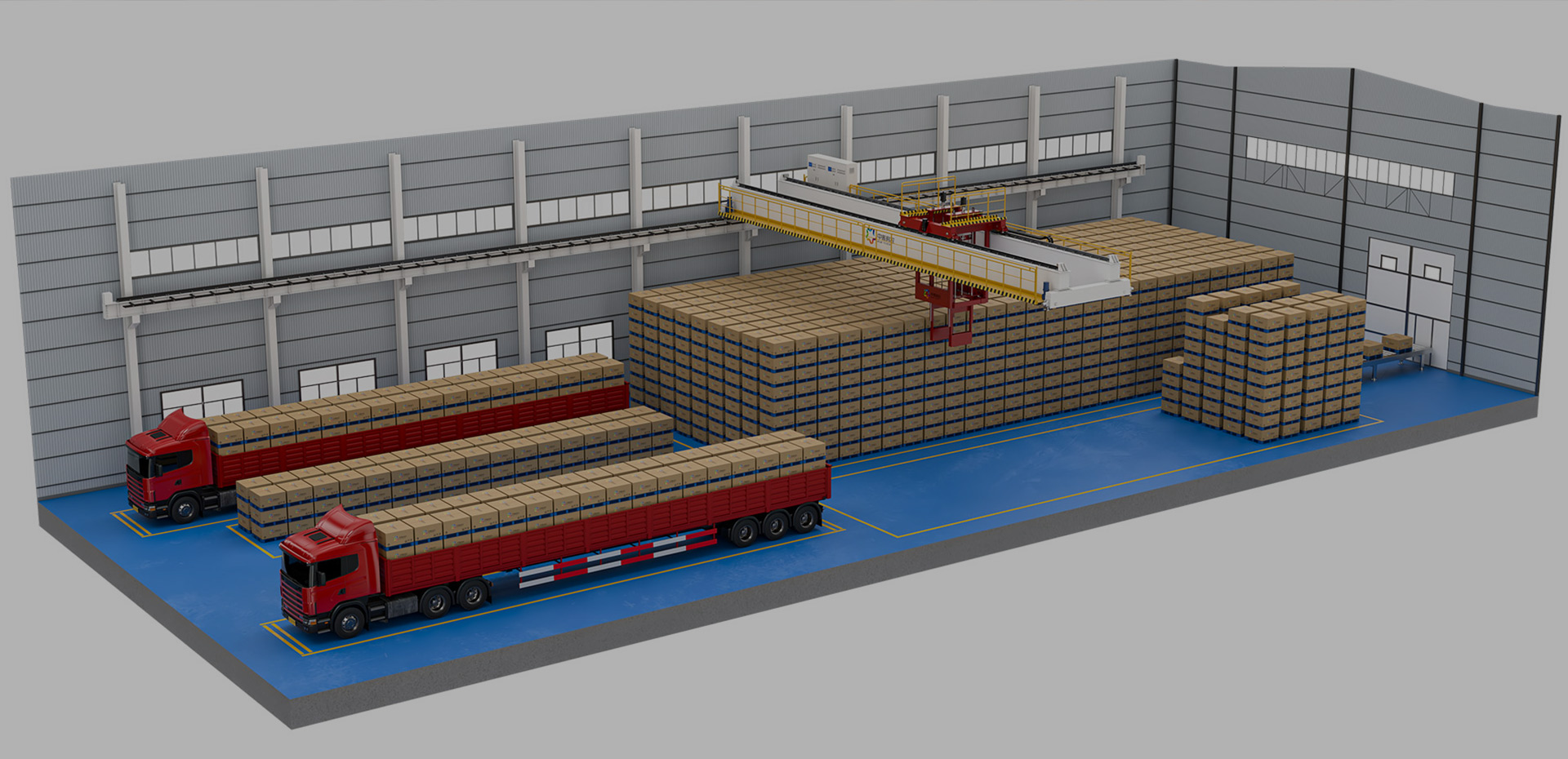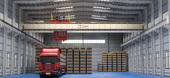 重載倉(cāng)儲(chǔ)物流及自動(dòng)裝卸車(chē)一體化總體方案由地堆平庫(kù)、空中物流機(jī)器人、物流調(diào)度及管理系統(tǒng)組成。